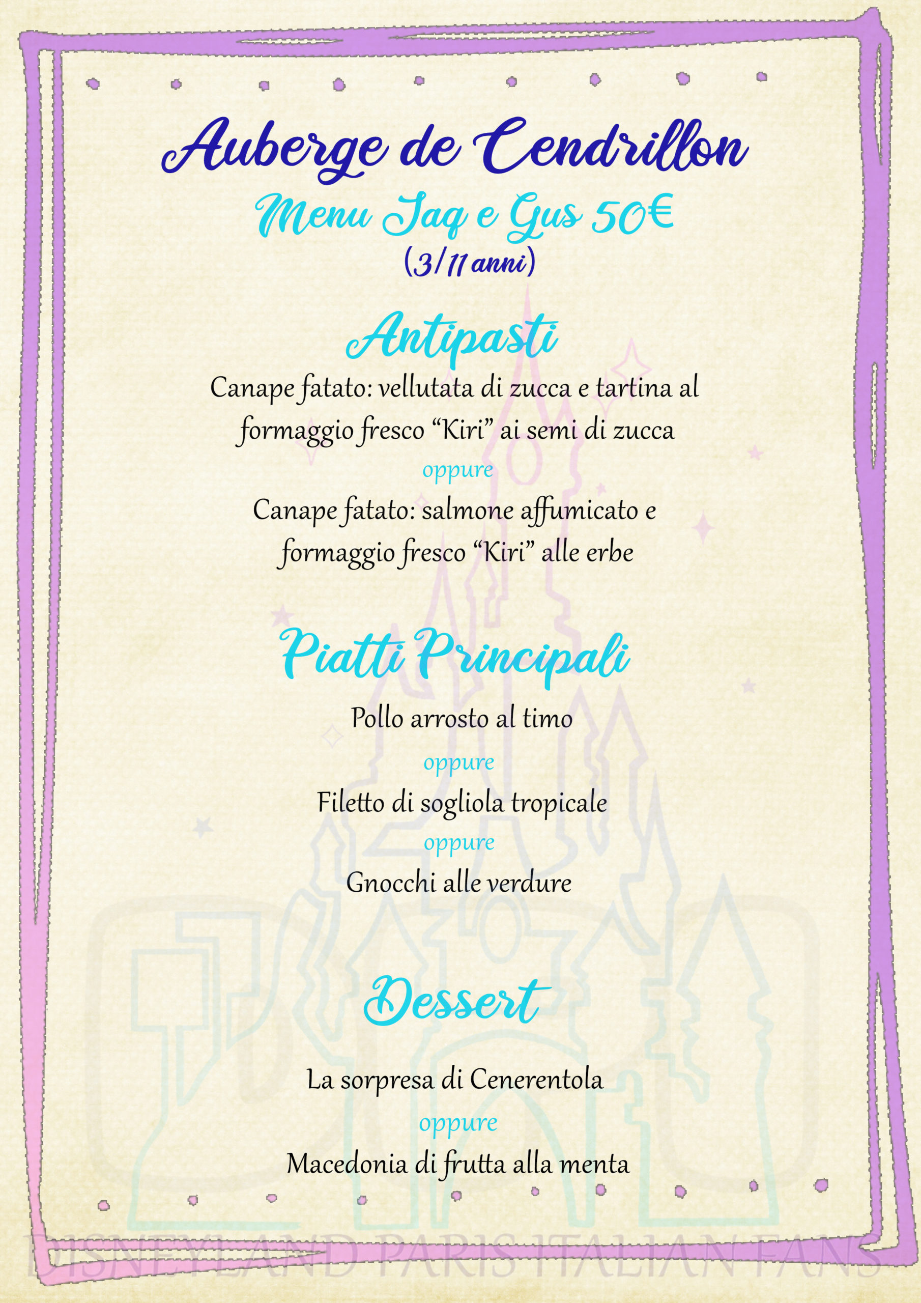 Qui trovate il menu per gli adulti, che ha un costo di 100€