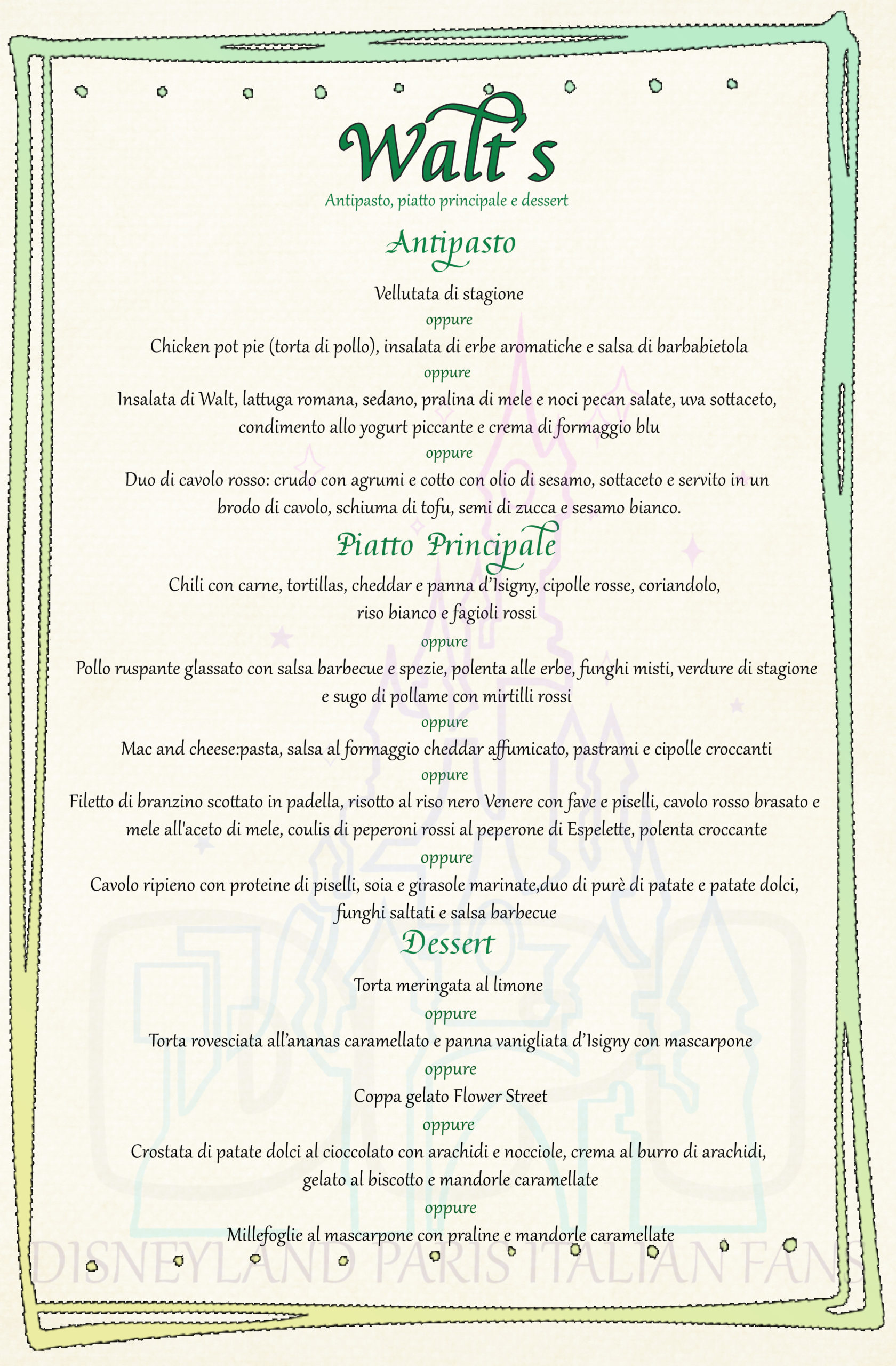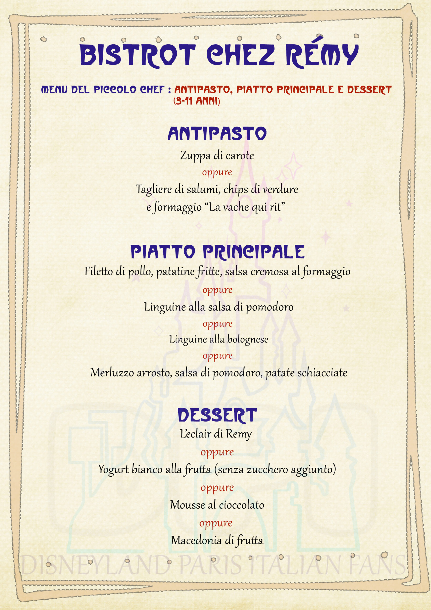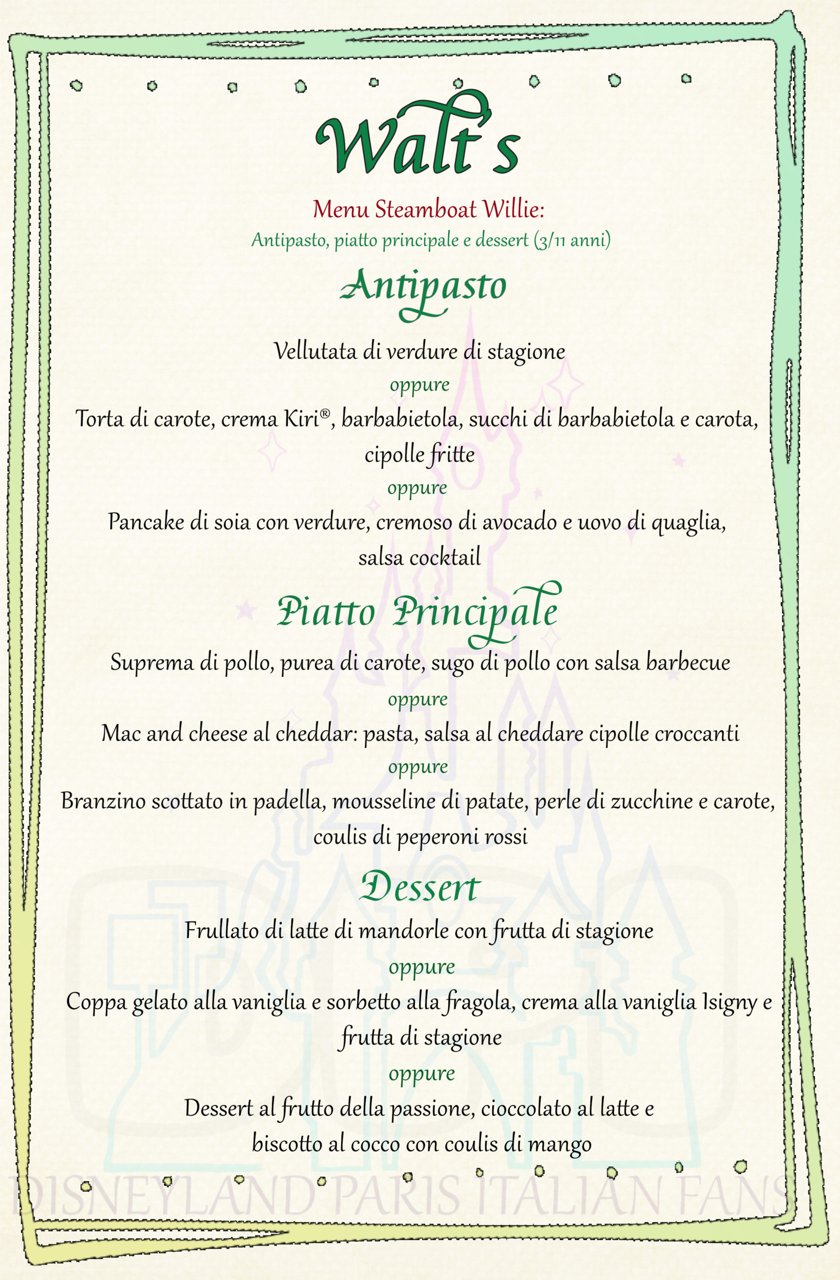 Cliccate qui per il menu Adulto, costo €55