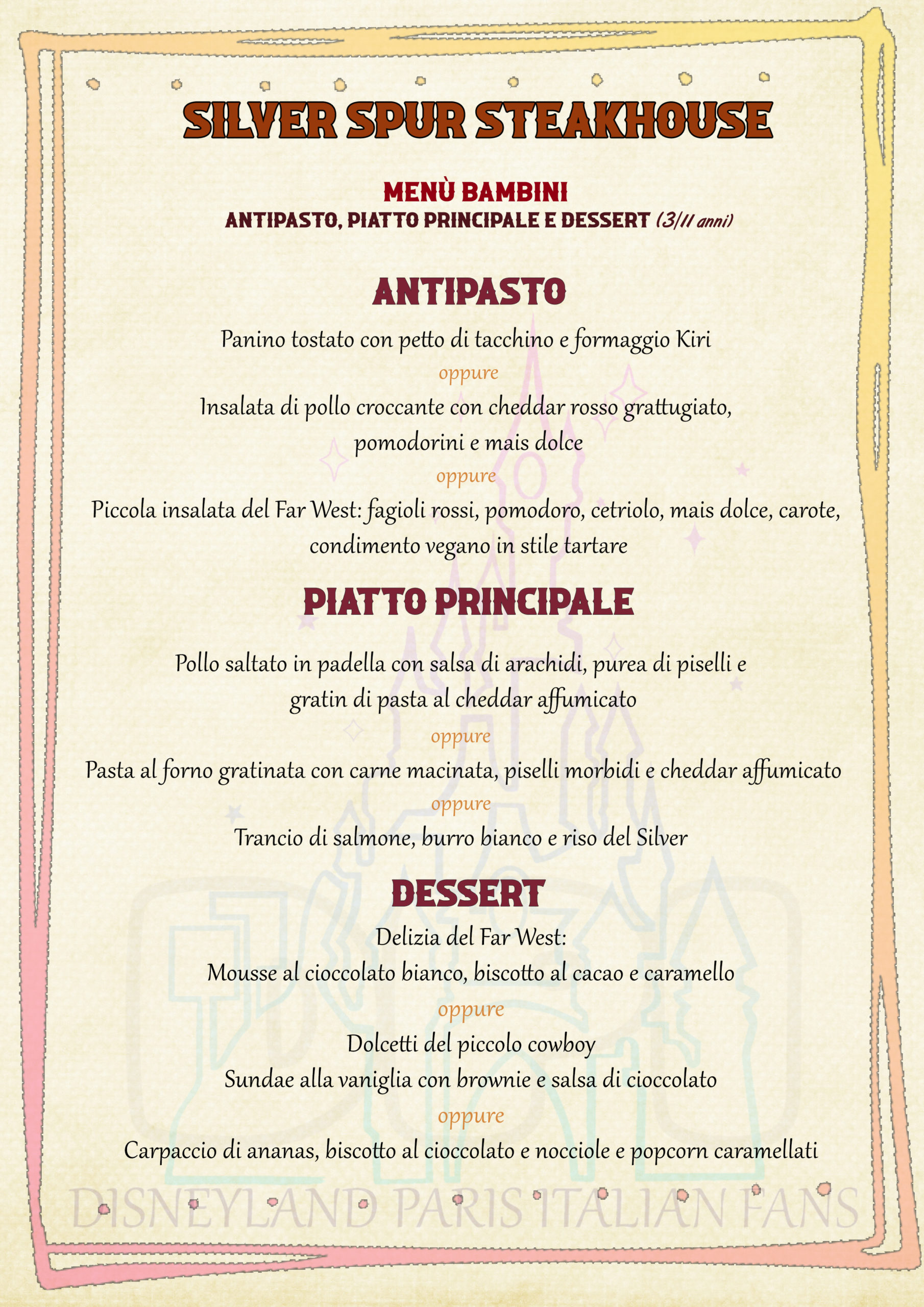 Qui il menu bambini, costo 50€